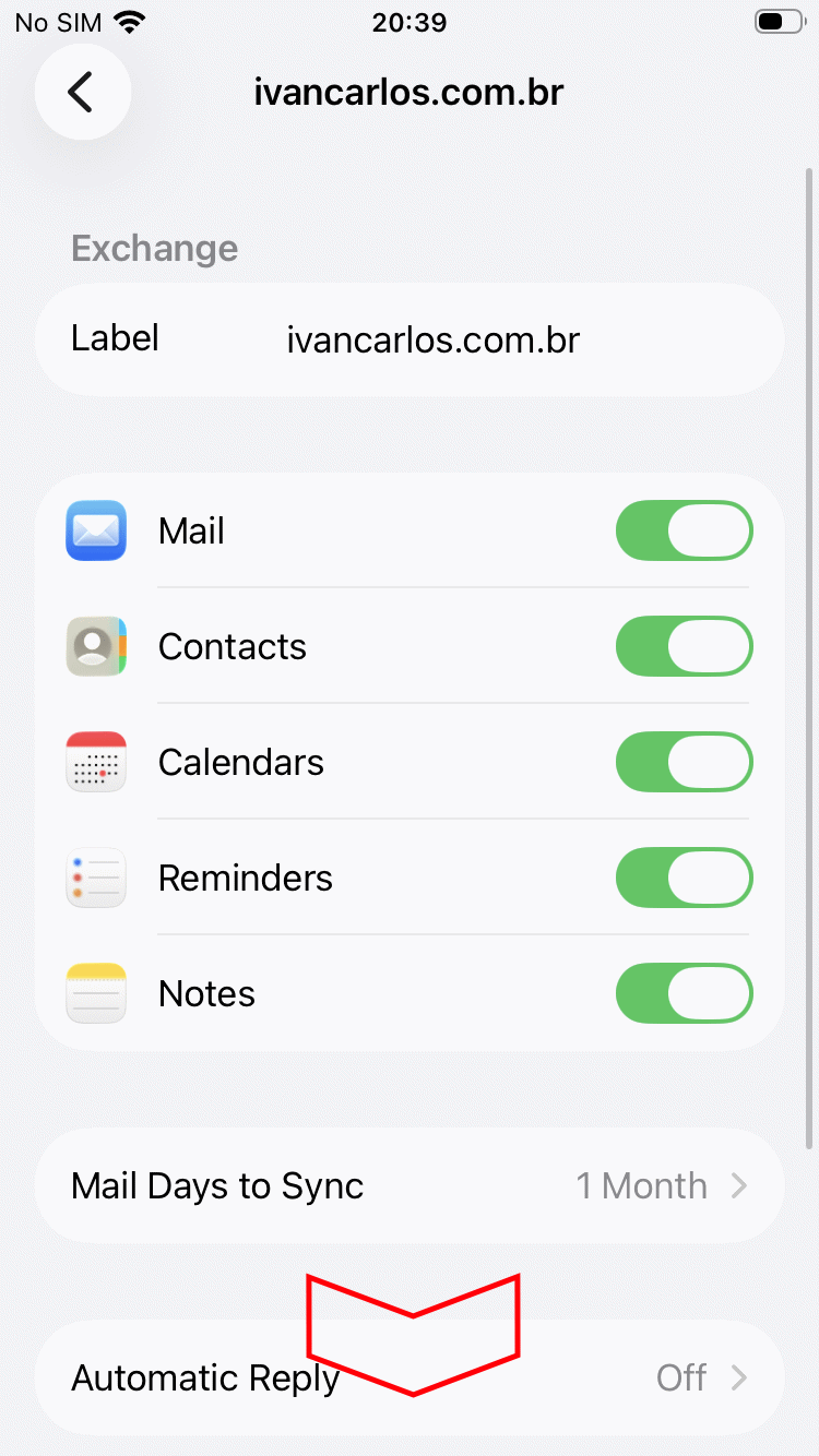 Scroll to the "Mail" item